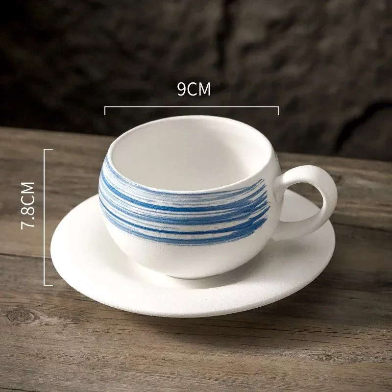 Japanese-Style 10oz Ceramic Coffee Cup with Oval Saucer