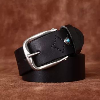 Men’s 1.5 Inch Genuine Cowhide Leather Belt with Classic Pin Buckle