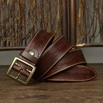 Men’s Vintage Genuine Leather Belt with Solid Brass Buckle – 1.5 Inch Wide