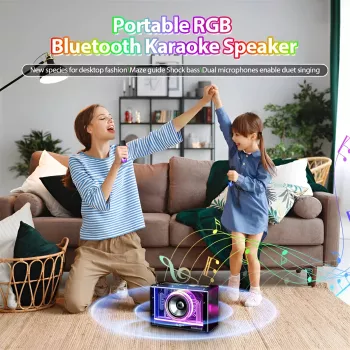 Portable RGB Karaoke Machine with Dual Wireless Microphones