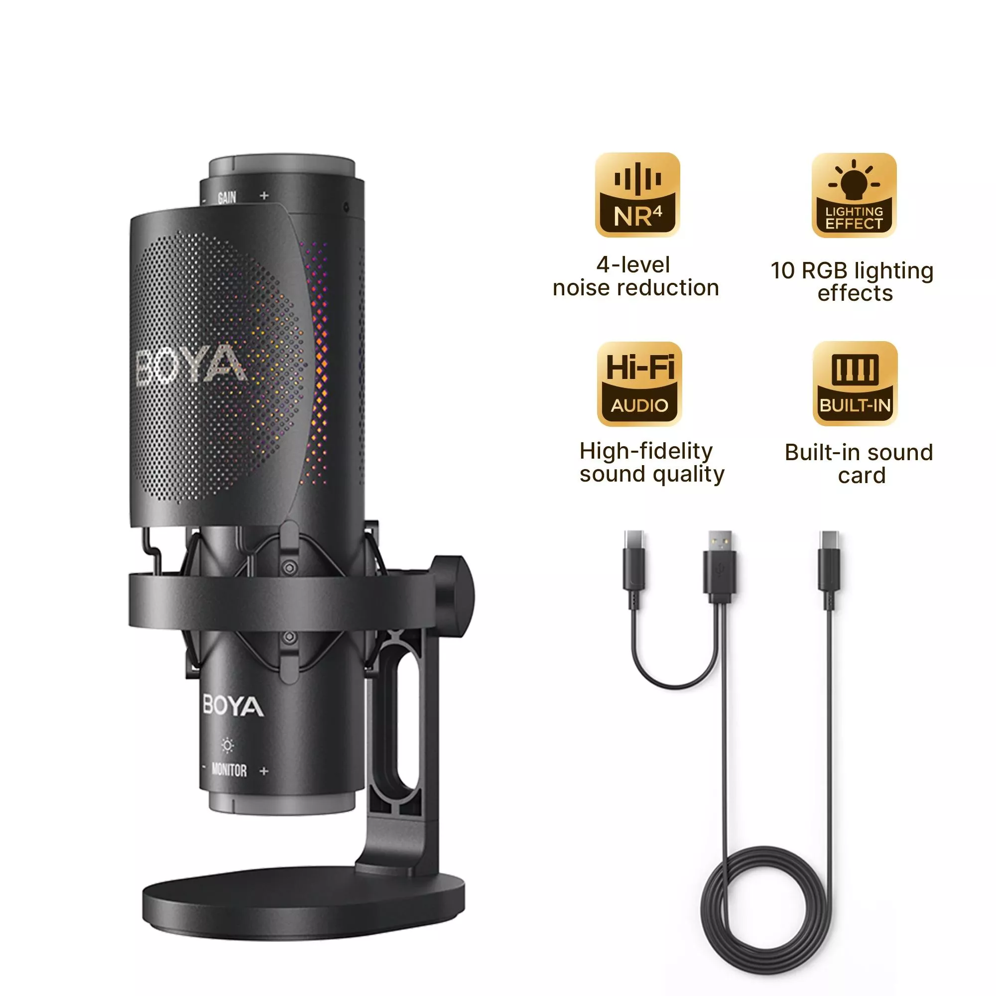 RGB USB Condenser Microphone with Multi-Pattern Recording & Tap-to-Mute